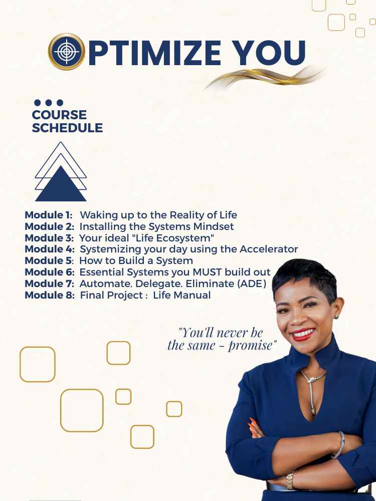 ✨Weekly Assignments designed to help you see and build your key systems to give you the Optimized Life!